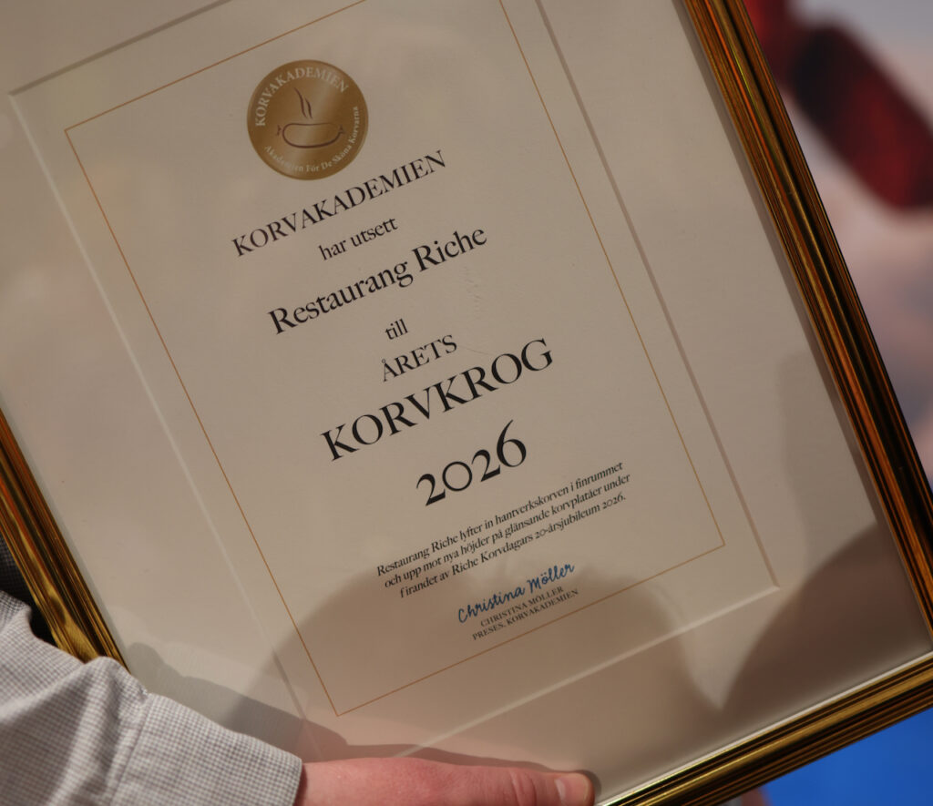 Utmärkelsen Årets Korvkrog 2026 tilldelas Restaurang Riche.